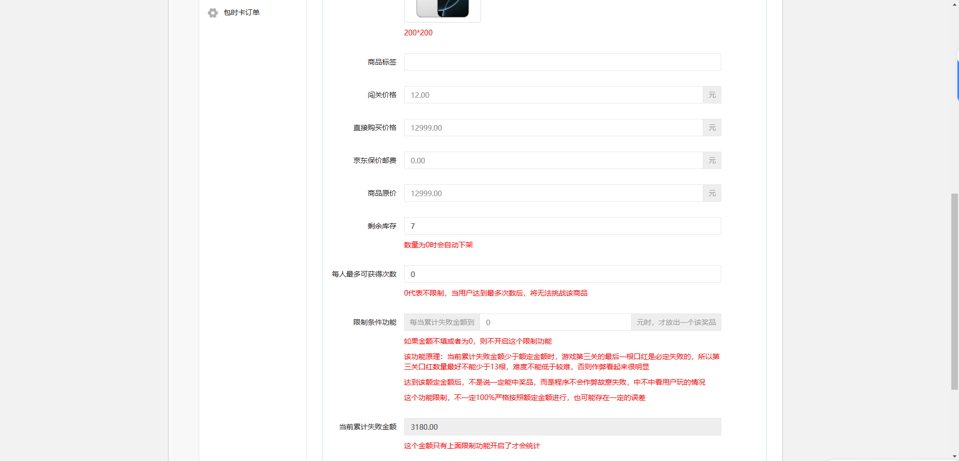 商品可设置无库存自动下架,支持设置当用户达到最多次数后,将无法挑战该商品