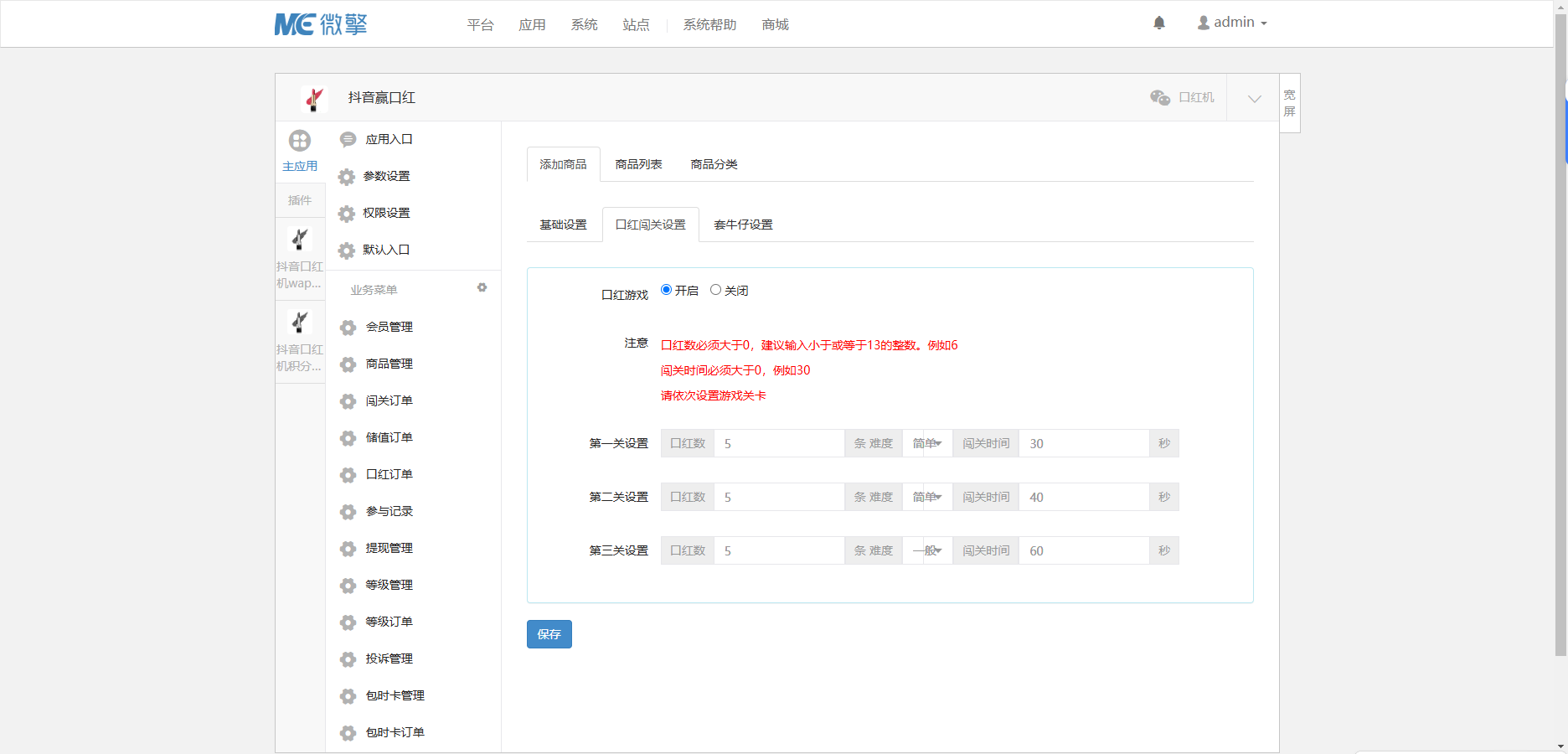 对比上个版本,修复了闯关成功之后奖品无法发放的问题,功能全部都测试了可以正常运营,使用微擎系统