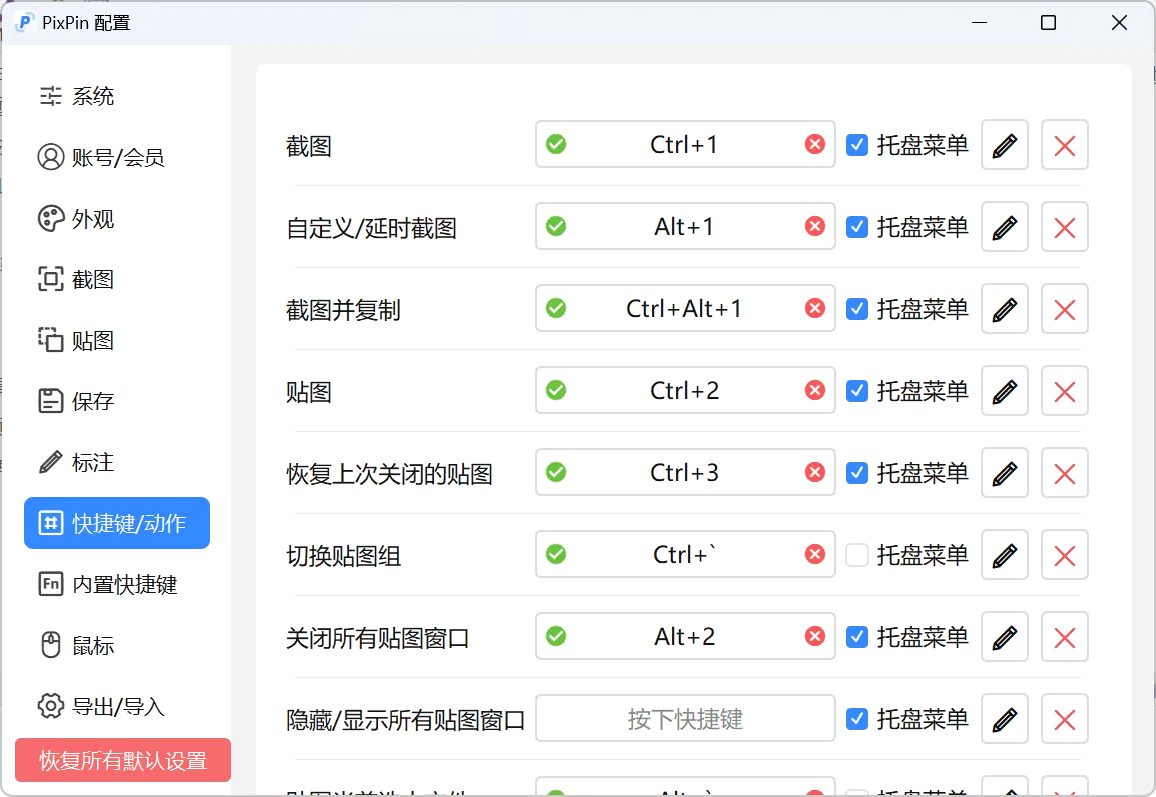 右键集成:在系统右键菜单中加入“使用PixPin贴图”的快速入口。